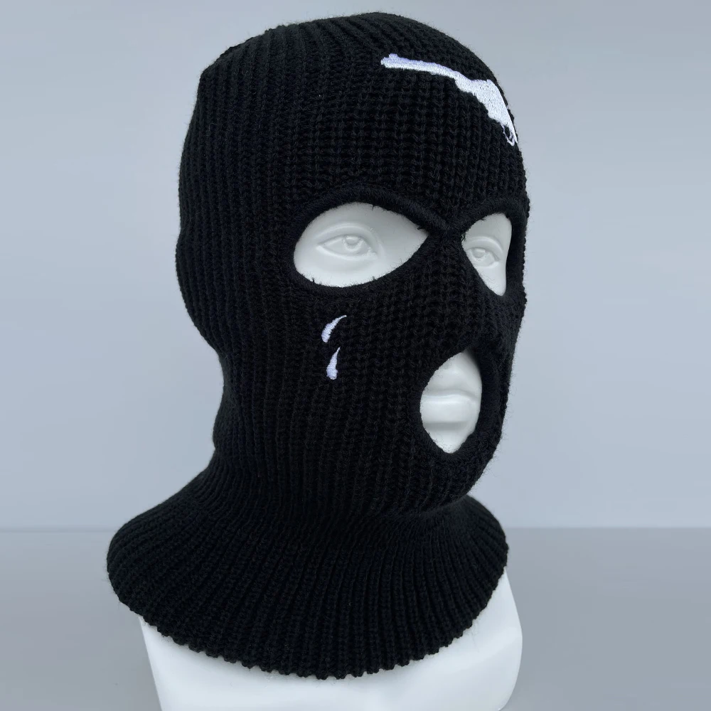 Модная Шапка-бини с вышивкой и 3 отверстиями, Балаклава, маска, гол...