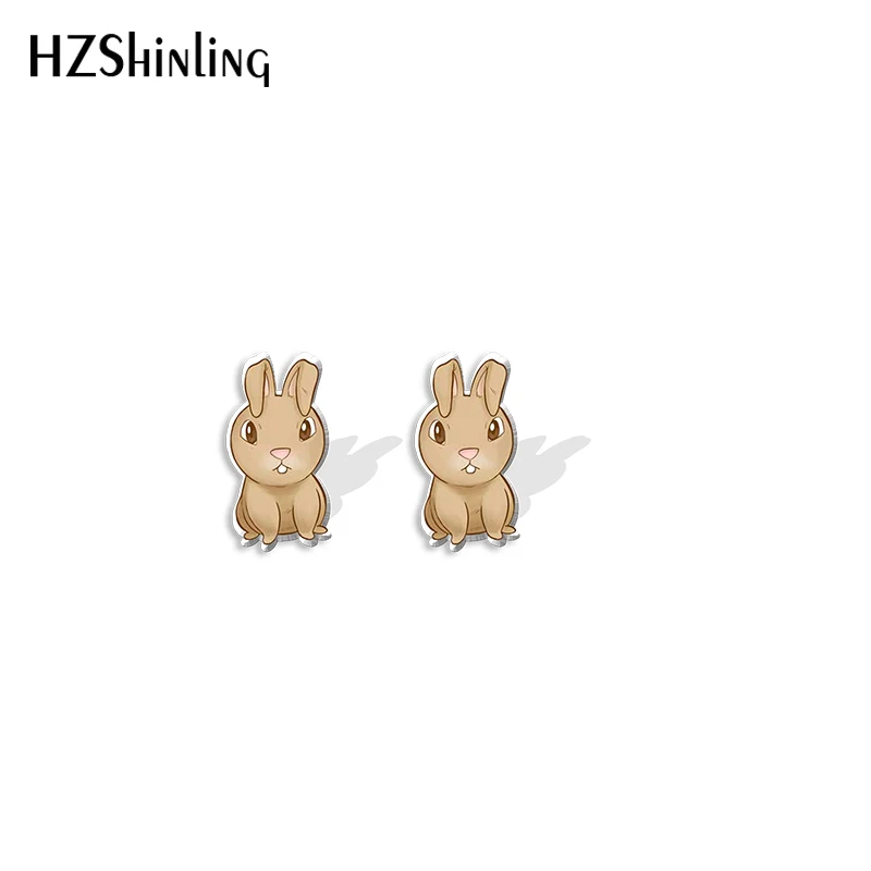 Акриловые серьги-гвоздики Алиса в стране чудес в виде кролика, ювел...