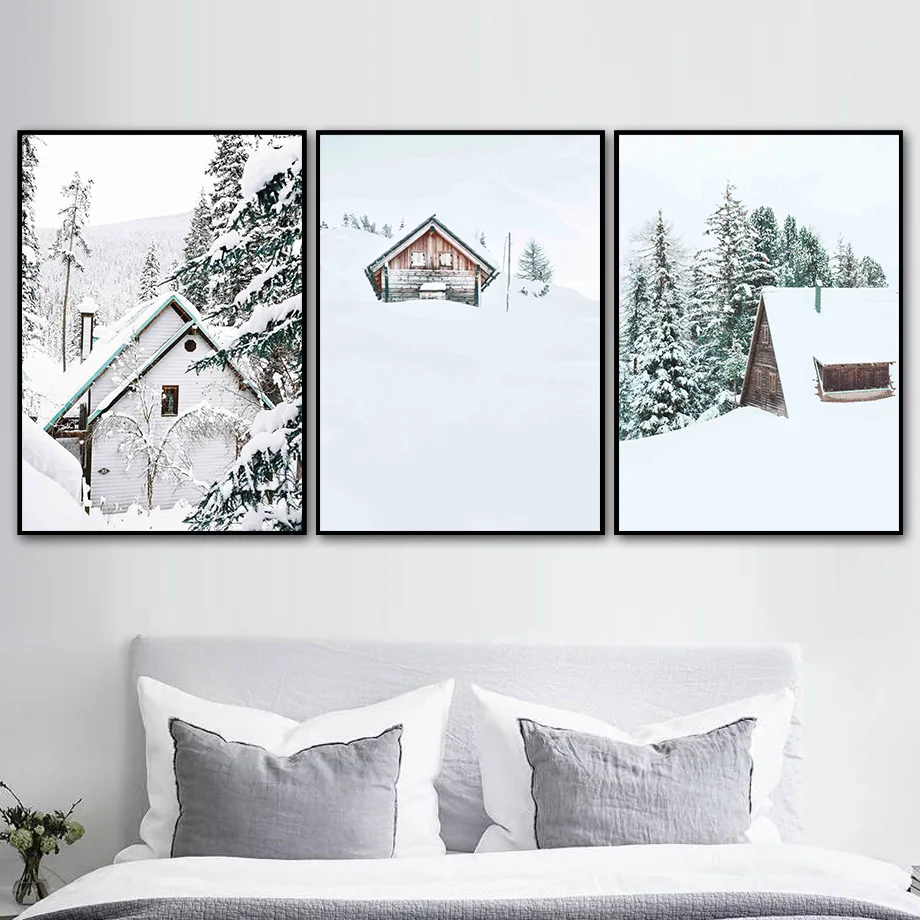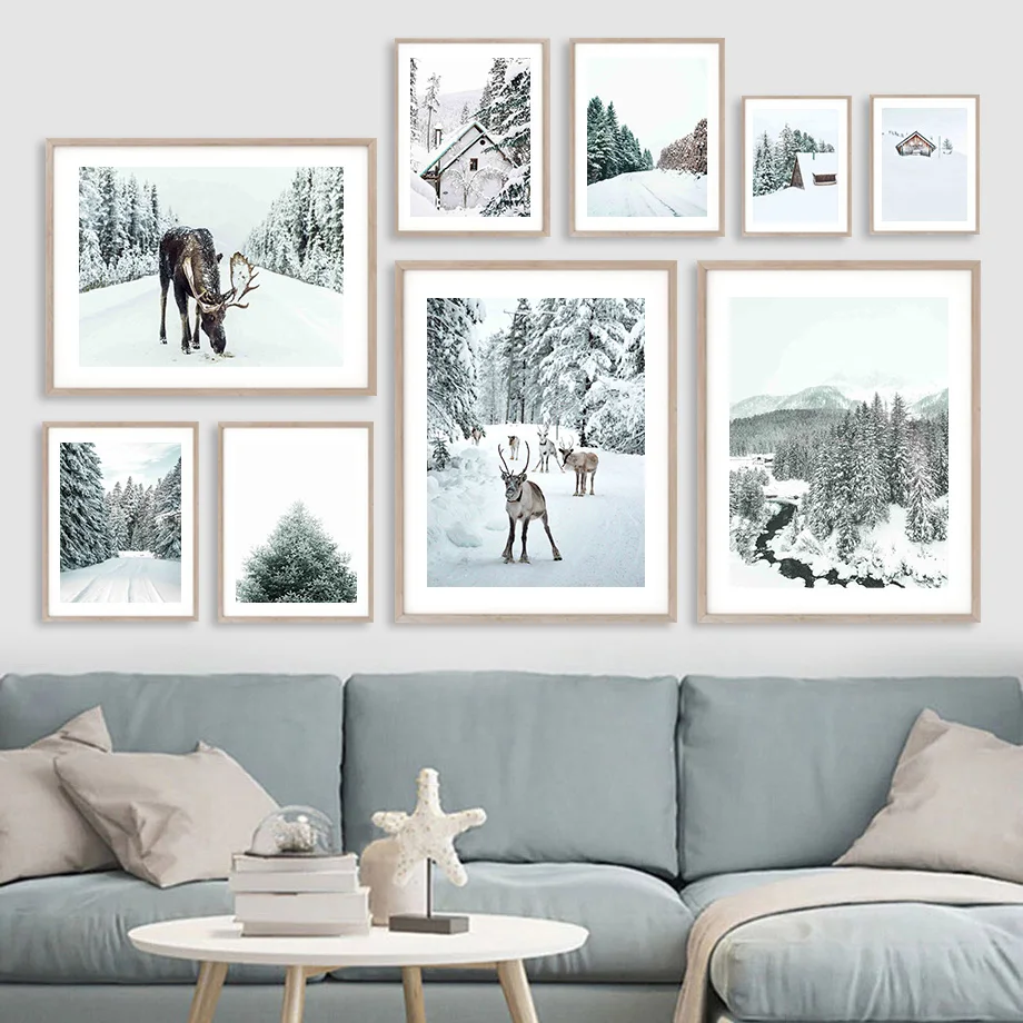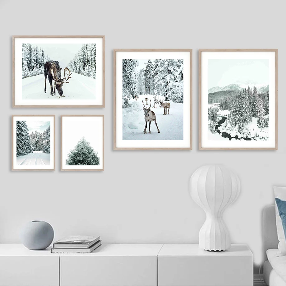 Настенная картина Снежная гора Лось сосна снежное поле настенная Картина на холсте скандинавские плакаты и принты настенные картины для декора гостиной