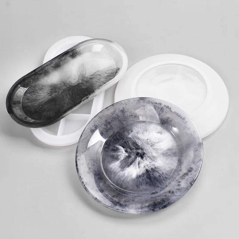 Тарелка для хранения, форма из смолы, Овальный Круглый лоток, силиконовая форма для хранения ювелирных изделий, тарелка для самостоятельного изготовления, Декор для дома и стола, литые инструменты