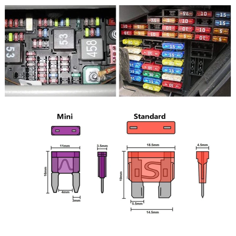 Описание:100% Новый брендВысококачественный цинковый сплав и пластик, устойчивый к коррозии и оптимальной проводимости, защищает ваш автомобиль и электрические устройства от перегрузки, короткого замыкания и т. Д.10 видов предохранителей лезвия, может удовлетворить ваши потребности в различных электрических устройствах.Дизайн цветных предохранителей в полупрозрачной оболочке позволяет легко определить, какой тип предохранителя необходим для замены.Удобный в использовании. Длительный срок службы.Используется для большинства транспортных систем и общего применения постоянного тока, подходит для автомобилей, грузовиков, такси, внедорожников, прицепов, лодок и т. д.Посылка 1: стандартный размер 100 шт.Размер: прибл. 0,75x0,74x0,2 дюймовНоминальная Ампер:2A, 3A, 5A, 7.5A, 10A, 15A, 20A, 25A, 30A, 35A (по 10 шт.)Посылка включает в себя:Предохранители 100 x Blade + чехол для хранения 1 xПосылка 2:120 штук маленького размераМатериал: пластик и металлЦвет предохранителя: прозрачный/желтый/красный/оранжевый/зеленый/синийПлавкий предохранитель Цвет: желтыйПредохранитель Размер: 16,8 мм/0.66in x 10,8mm/0.42in (Д х Ш х В)Монтажа предохранителей Размеры: 30 мм/1.18in x 9,6 мм/0.37in х 8 мм/0.31in (Д х Ш х В)Предохранителей: 17,5 см/6.89in x 9,8 см/3.86in x 2,2 см/0.87in (Д х Ш х В)Предохранитель разных цветов: оранжевый 5 ампер, красный 10 ампер, синий 15 Ампер, желтый 20 Ампер, прозрачный 25 ампер, зеленый 30 АмперПосылка включает в себя:1 x предохранитель x 1 20 шт x предохранитель (20 шт/каждый цвет)Посылка 3:140 шт стандартный размер11 видов предохранителей ATO blade, различные 2A-40A, которые отвечают всем вашим потребностям.Amp и количество: 2a-10шт, 3a-10шт, 5a-10шт, 7.5а-20шт, 10a-10шт, 15A-20шт, 20a-10шт, 25A-20шт, 30a-10шт, 35a-10шт, 40a-10штПосылка включает в себя: 1 box140pcs x страхование автомобиляПосылка 4:120 штук маленького размераAmp и количество: Автомобильный страховой лист маленький2A,35A,3A ,7.5A,30A,25A,20A,15A,10A,5A,(по 10 шт. каждого)Автомобильный страховой инструмент Желтый зажим 1 шт.10 прозрачных пластиковых коробок 1 шт.Посылка включает в себя: 120 шт./кор. х Авто страховые планшетыПосылка 5:100 шт Мини РазмерAmp и количество: 5a-10 шт, 7.5A-10 шт, 10a-10 шт,15a-10шт, 20a-20шт, 25a-20шт, 30a-20штРазмер предохранителей (Д X Ш X В):11x10x4 ммРазмер коробки (Д X Ш X В):128x68x22 ммПосылка включает в себя: 120 шт мини/коробка x Авто страховка таблеткиПримечание:Допускается погрешность в 1-2 мм из-за ручного измерения.Цвет объекта, показанный на фотографиях, может немного отличаться на мониторе вашего компьютера, потому что мониторы не откалиброваны так же.