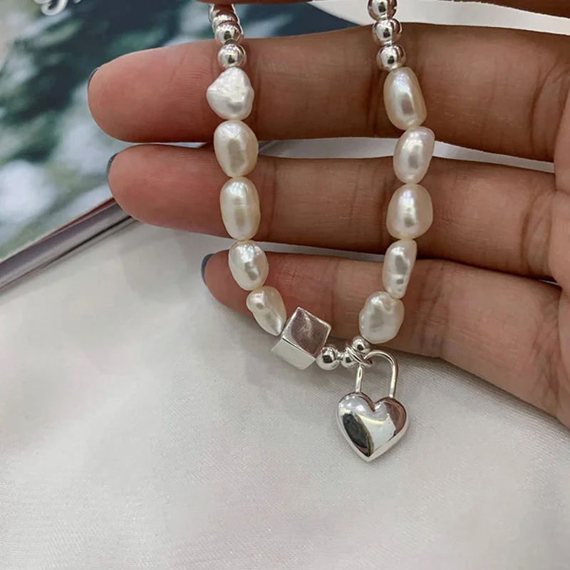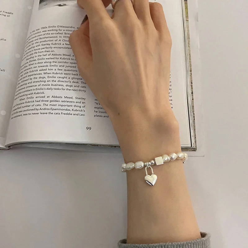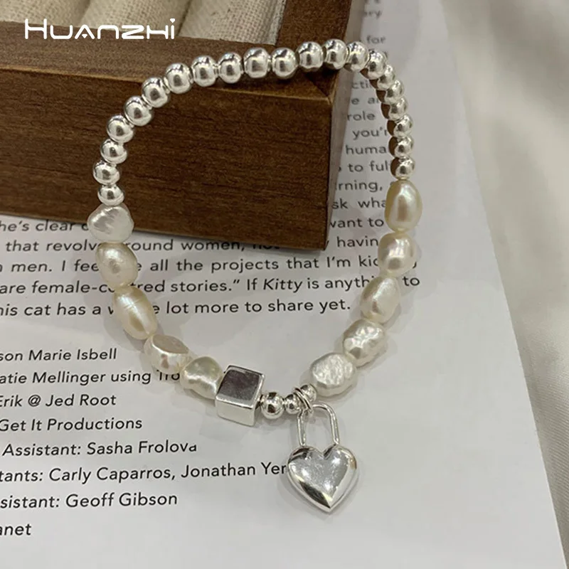 Барокко Жемчуг ЛЮБОВЬ сердце кубик бусы браслет для женщин Эластичность Регулируемый Сладкий ювелирные изделия подарок девушки HUANZHI 2021 тренд