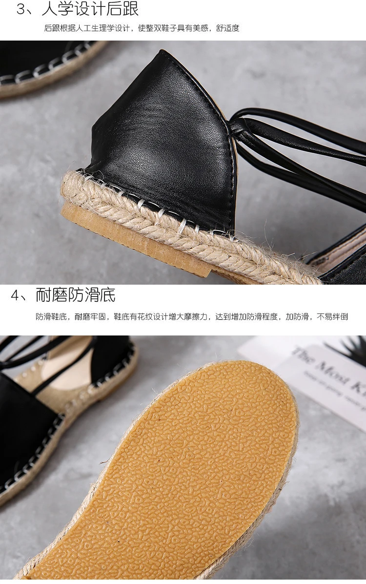 Сандалии женские на шнуровке, модные однотонные туфли из соломы, пл...