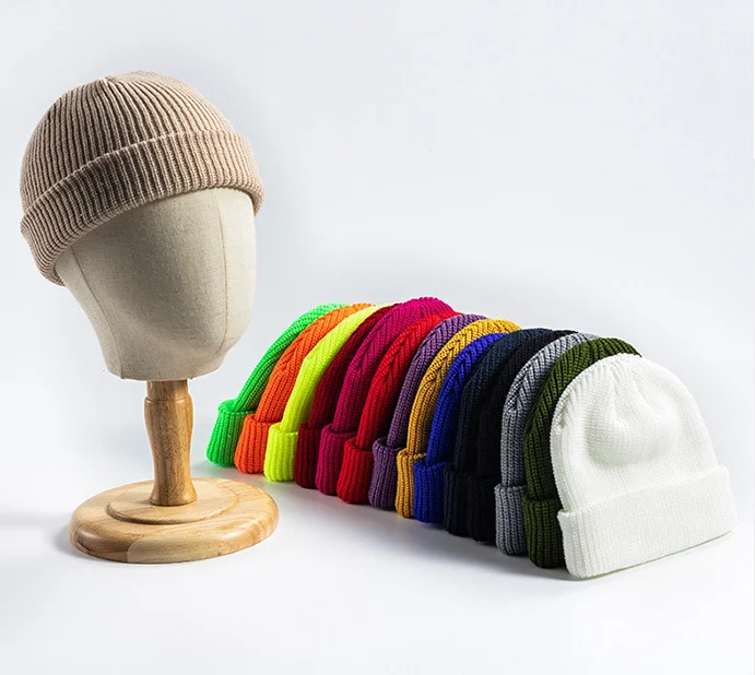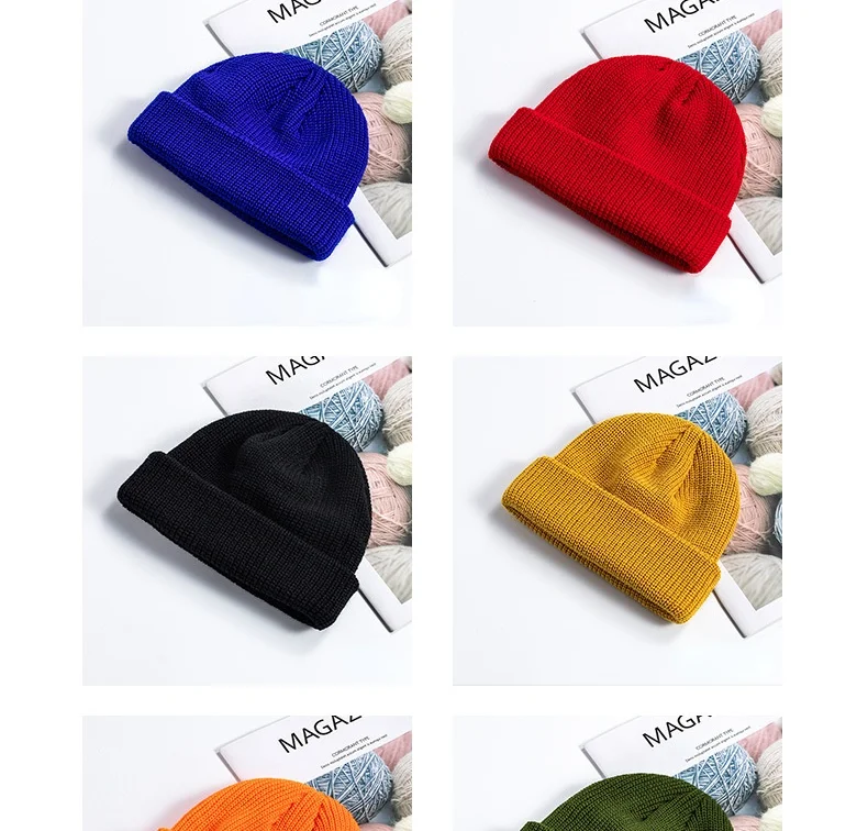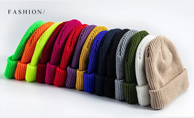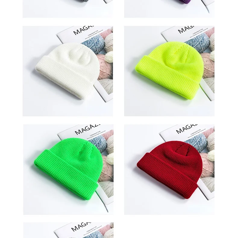 Модные шапки бини для женщин и мужчин зима осень теплая вязаная шапка без полей однотонная шапка бини флуоресцентная крышка головной убор