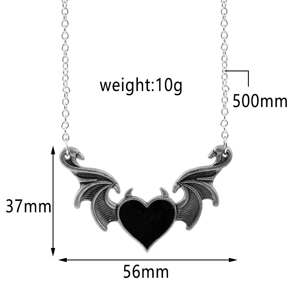 Модный тренд панк любовь сердце кулон ожерелье для женщин крыло летучая мышь ожерелья подарок на вечеринку в честь Хэллоуина винтажные креативные ювелирные изделия