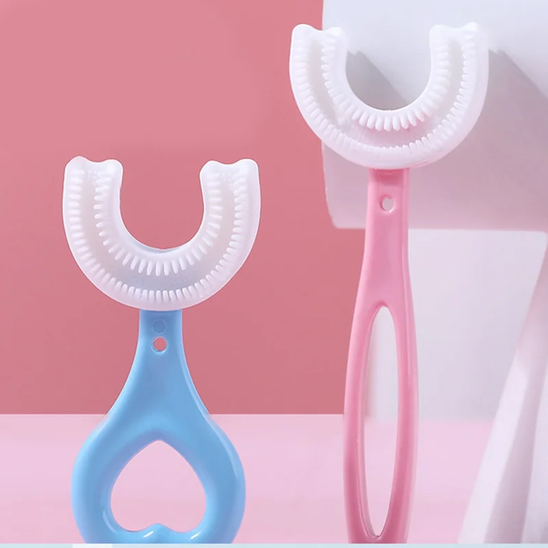Детская зубная щетка U-образной формы, зубная щетка с ручкой, Силиконовая зубная щетка для ухода за полостью рта для малышей от 2 до 12 лет