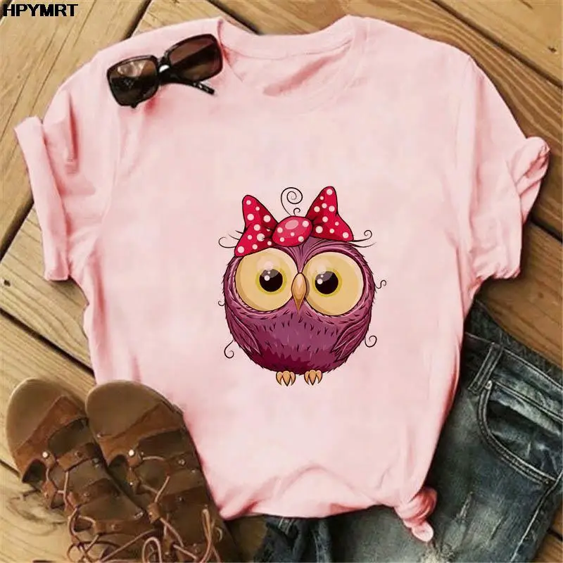 Женская футболка с принтом совы, розовая футболка с коротким рукавом, большие размеры, лето 2022