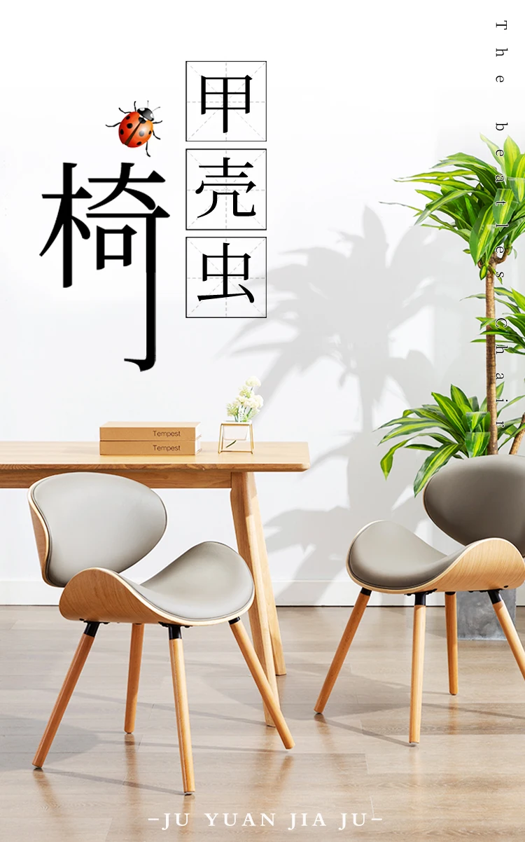 Европейский современный простой роскошный стул, маленькая семья в форме жука, практичный обеденный стул из твердой древесины и кожи