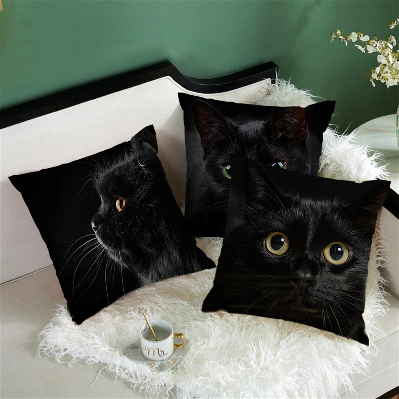 Новинка 2022, Чехол на подушку с милым черным котом, Мультяшные забавные картинки, украшение для гостиной, домашний чехол на диван, стул, обнимающую подушку