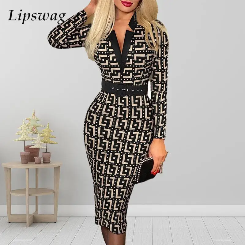 Женское офисное платье с длинным рукавом, элегантное привлекательное облегающее платье в горошек с глубоким V-образным вырезом, весна 2022