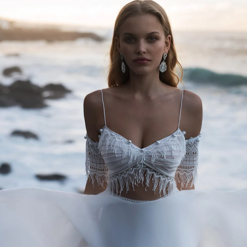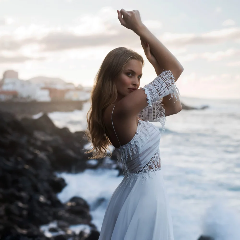 Пляжные свадебные платья, кружевные аппликации, сексуальное богемно...