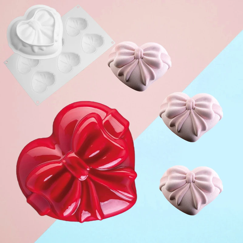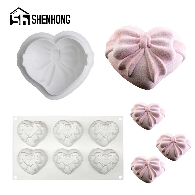 Силиконовые формы для торта SHENHONG в форме сердца с бантом, набор для выпечки с полостью 16, формы для мусса, кондитерские инструменты для выпечки на День святого Валентина