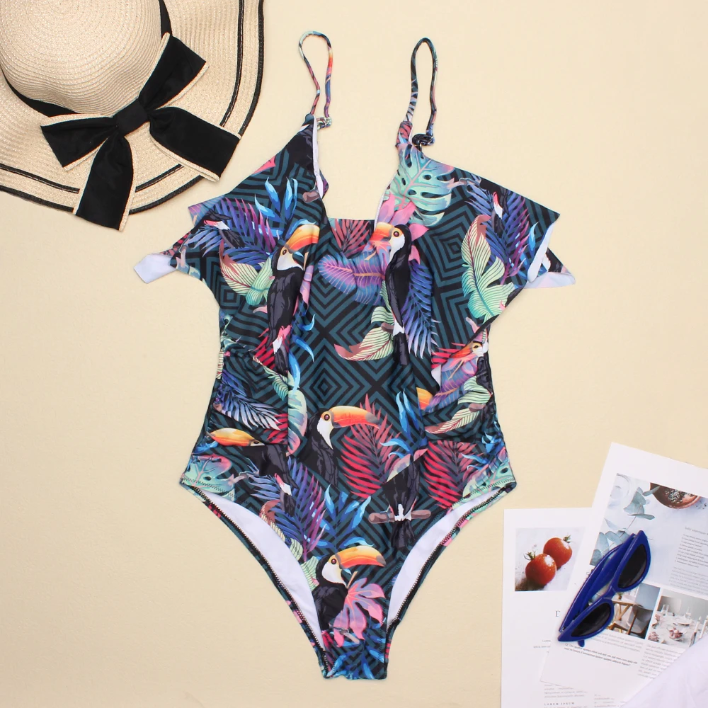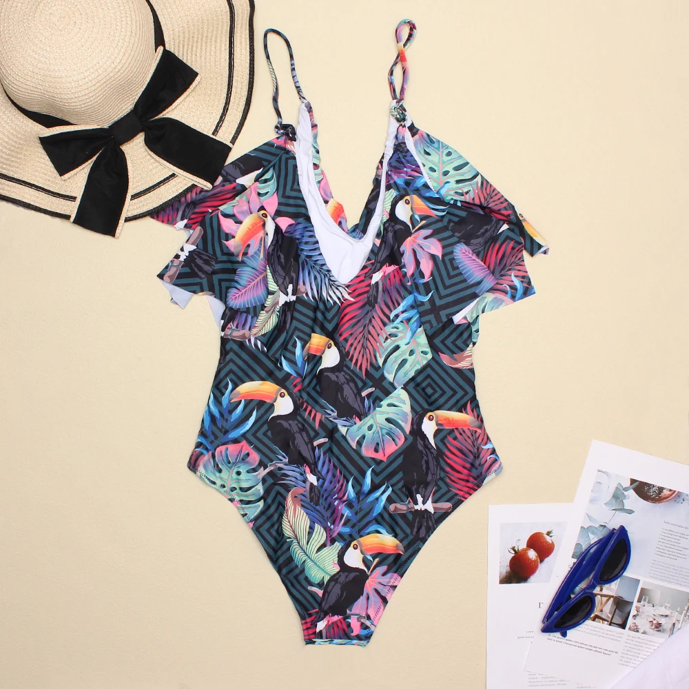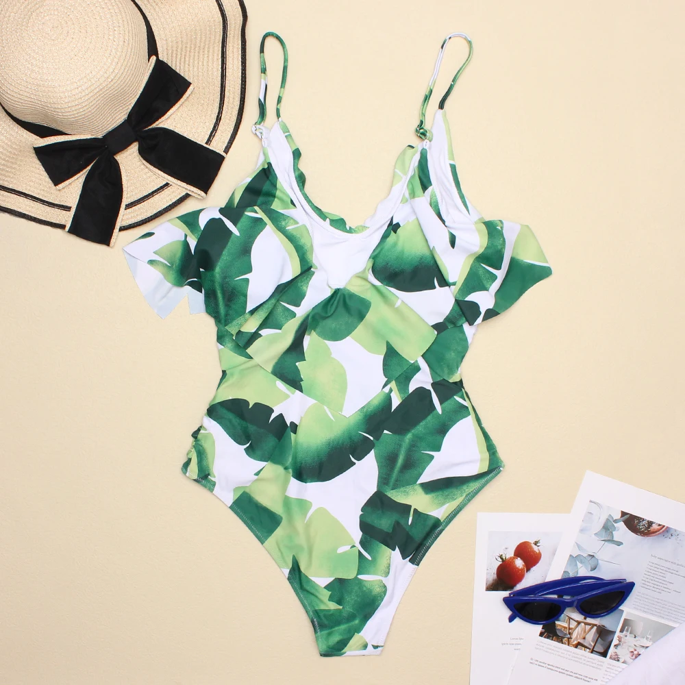 Женский слитный купальник с оборками, Раздельный купальник с открытой спиной и принтом, размеры s-xxl, 2022