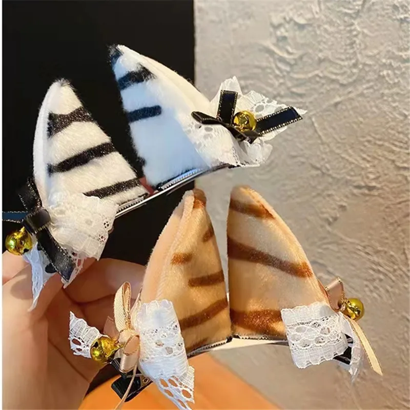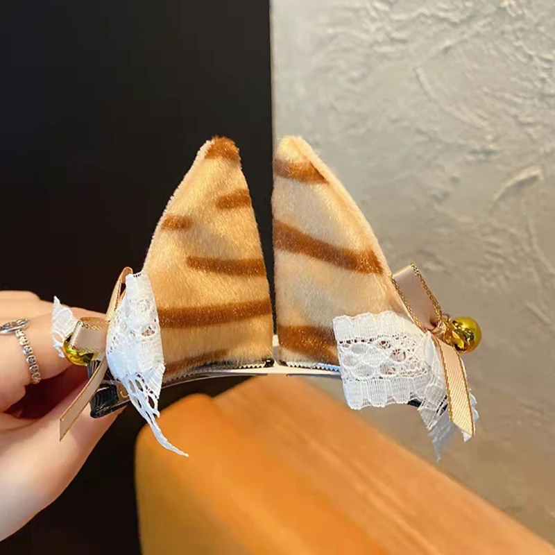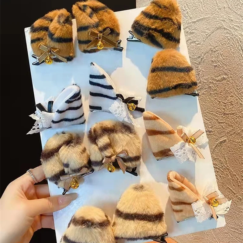 Заколки для волос плюшевые с тигровыми ушками для девочек, милые де...
