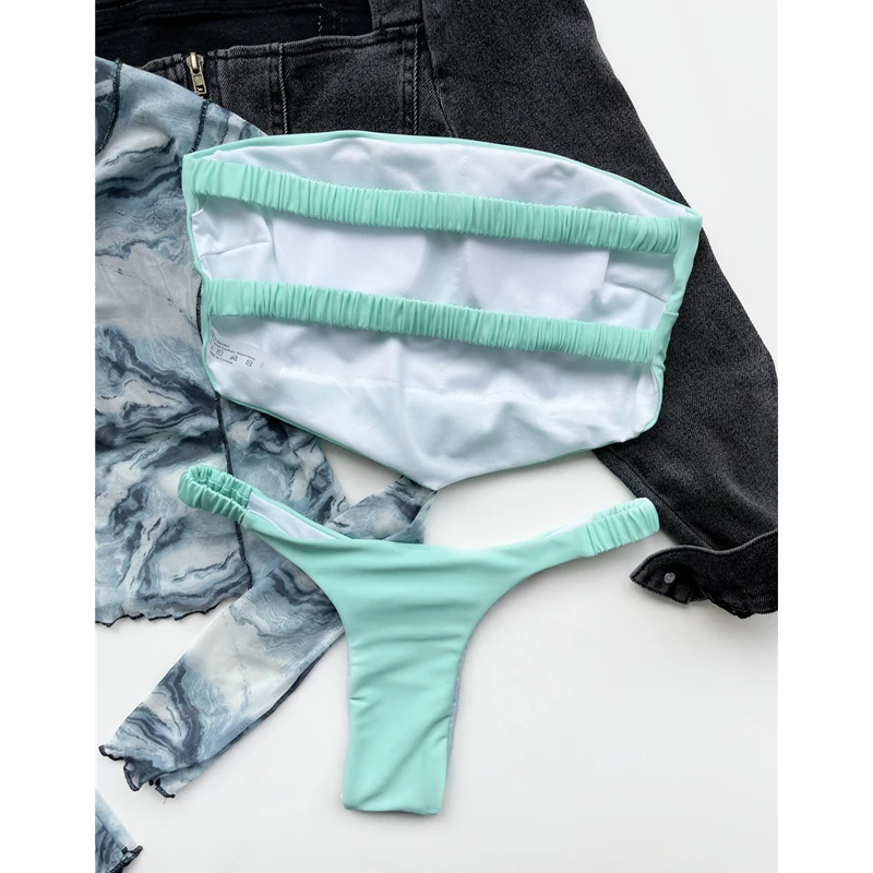 Сексуальный комплект бикини без бретелек, купальники для женщин, новинка 2022, Одноцветный купальник из двух частей, летний женский Пляжный топ, бикини, купальные костюмы