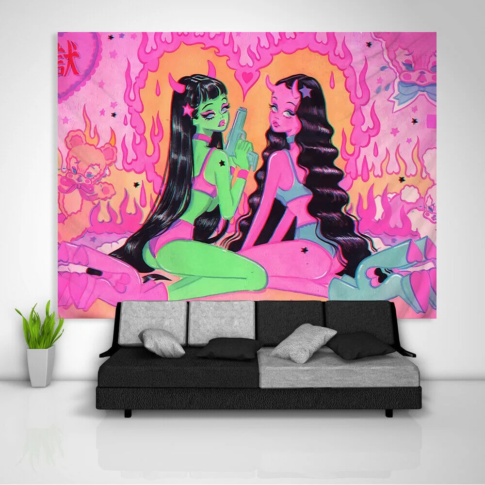 Милый женский настенный гобелен аниме милые девушки иллюстрации гобелены эстетическое искусство чехол для дивана