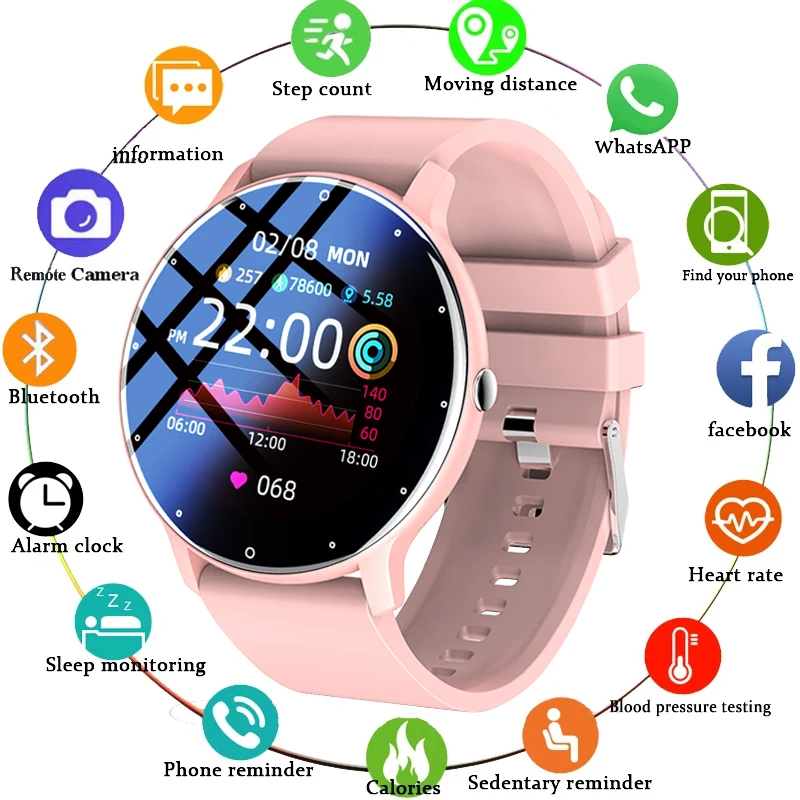 2021 модные умные часы с сенсорным экраном для женщин с пульсометро...