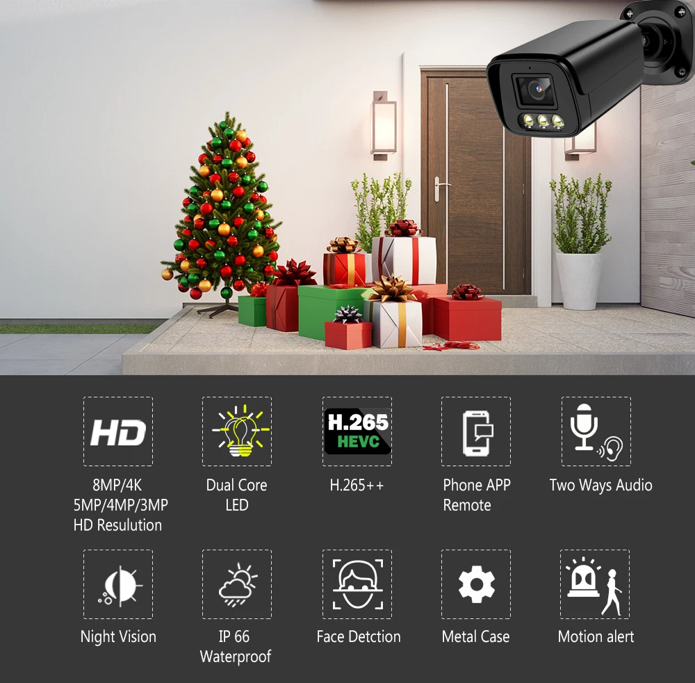IP-Камера уличная с датчиком движения, 4K, 8 Мп, 2,8 мм, H.265, POE, 5 МП, 3 Мп