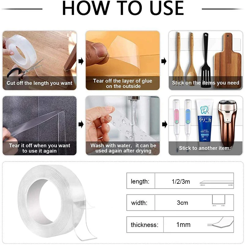 Двухсторонняя клейкая лента, 1-5 метров, наногелевая клейкая лента,...