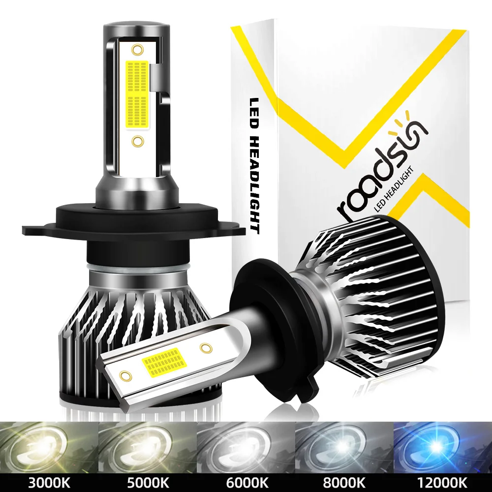 Светодиодные автолампы roadsun, лампы для головных фонарей H4, H7, H8, H11, H1, H3, H13, 9004, 9007, 9005, HB3, 9006, HB4, 12 В, 24 В, 6000K, 8000K