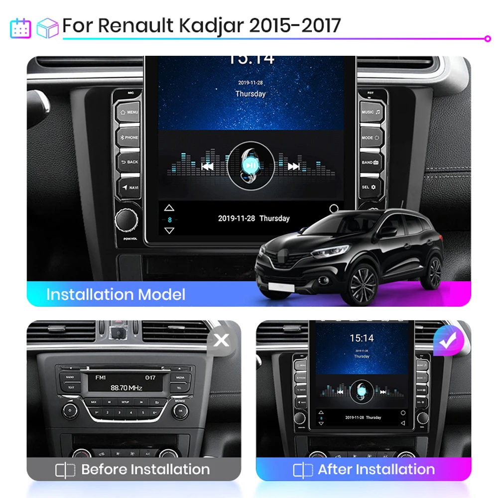 Автомобильный мультимедийный плеер Carplay, 2 Din, экран 9,7 дюйма Tesla, Android, Авторадио для Renault Kadjar 2015-2017, головное устройство с GPS-Навигатором