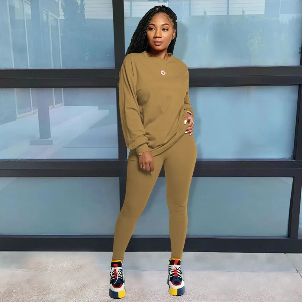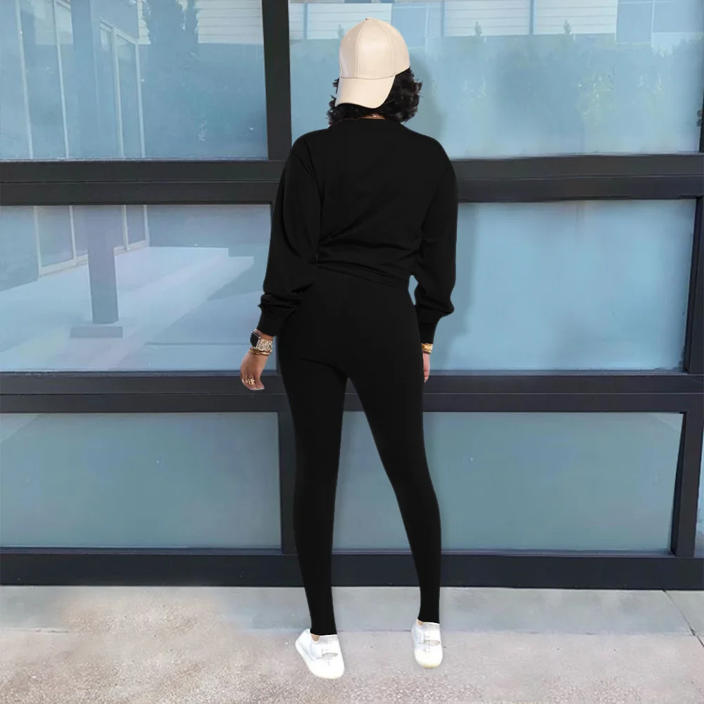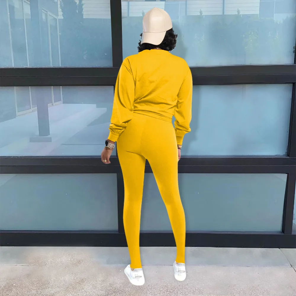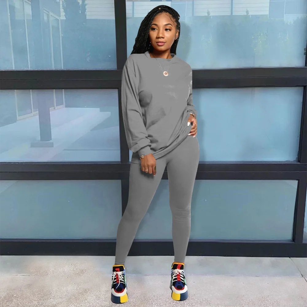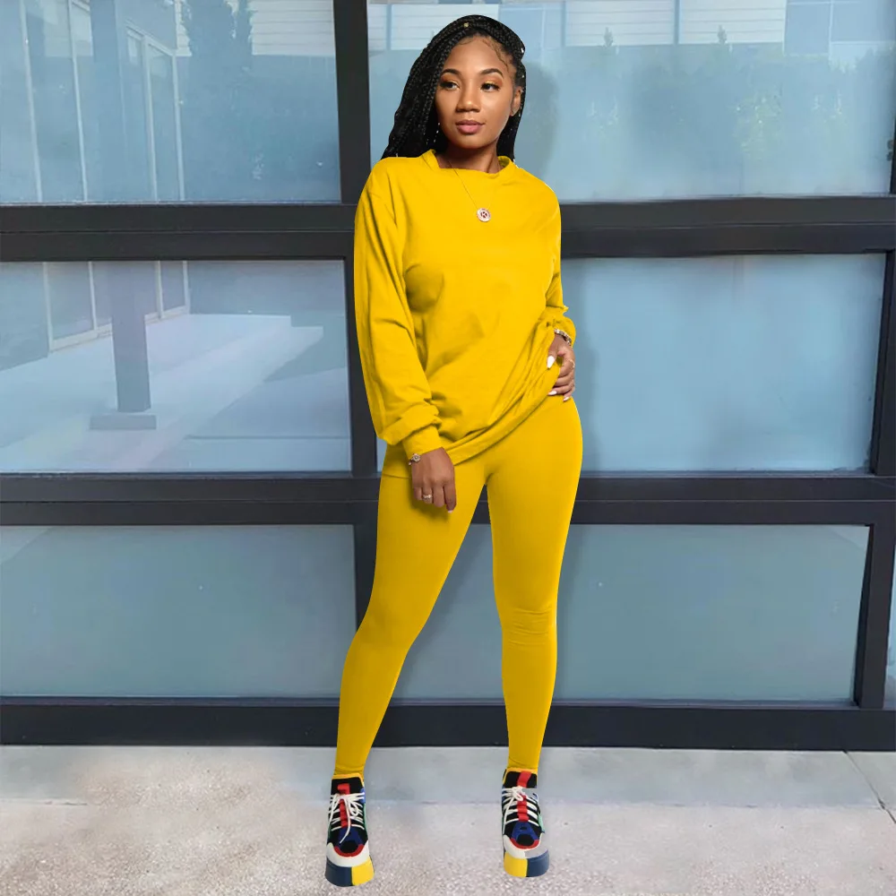 Модный классический однотонный Женский комплект из 2 предметов, Женский свитшот, брюки-джоггеры, костюм, спортивный костюм, подходящий комплект, повседневная одежда