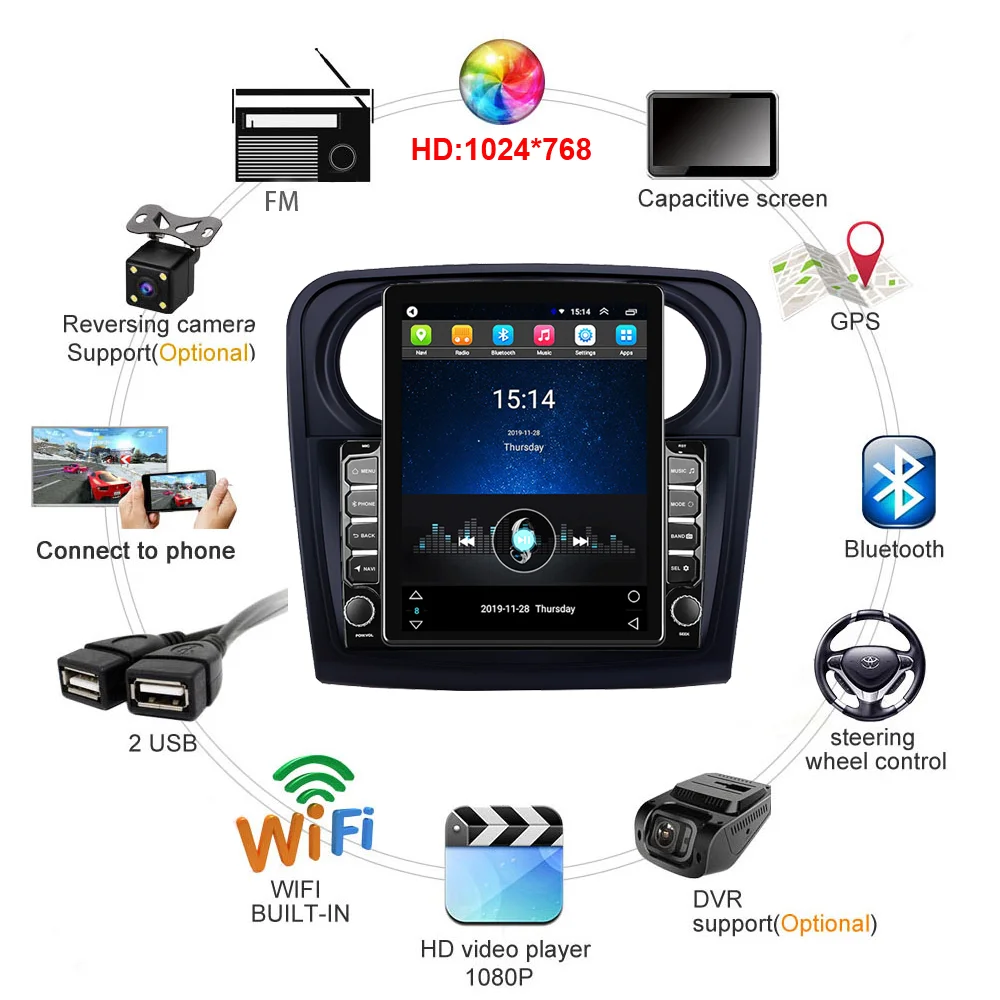 Автомобильный мультимедийный плеер Carplay, 4G, 2 Din, экран 9,7 дюйма Tesla, Android, для Renault Logan 2 Sandero 2 2014 -2019, GPS-навигатор