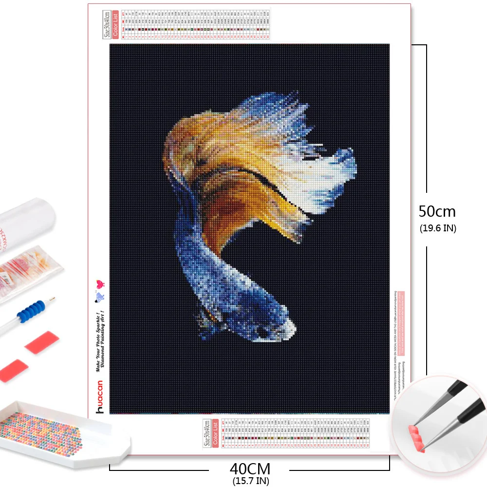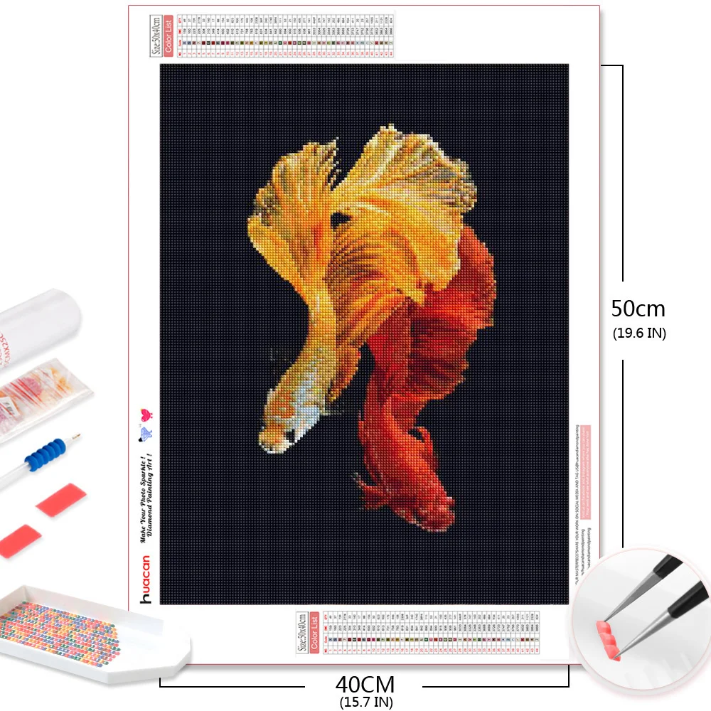 Алмазная мозаика HUACAN с изображением рыб, картина 5D сделай сам с животными, Набор для вышивки квадратными стразами, творческие хобби