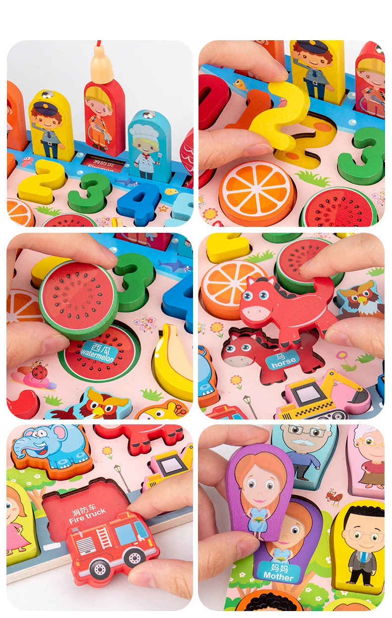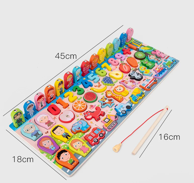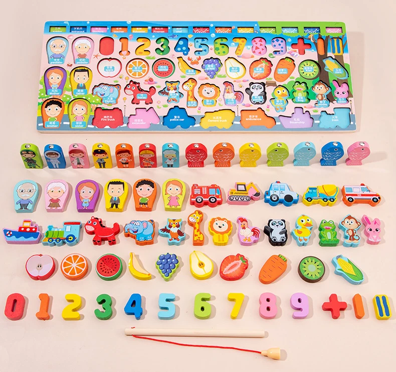 Обучающие игрушки Монтессори, деревянная игра для рыбалки с занятым движением, Настольная головоломка, Дошкольная цифровая игрушка, подарок для детей