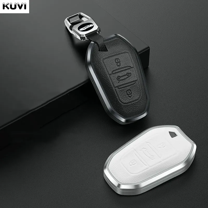 Чехол из сплава и кожи для автомобильного смарт-ключа для Peugeot 3...