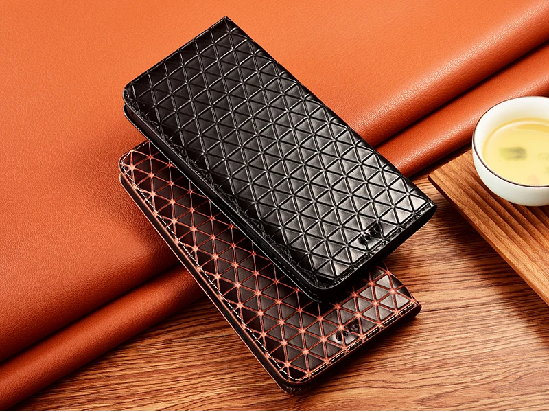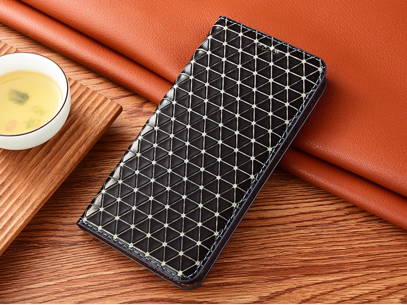 Чехол-книжка из натуральной кожи на магните с рисунком решетки для ...