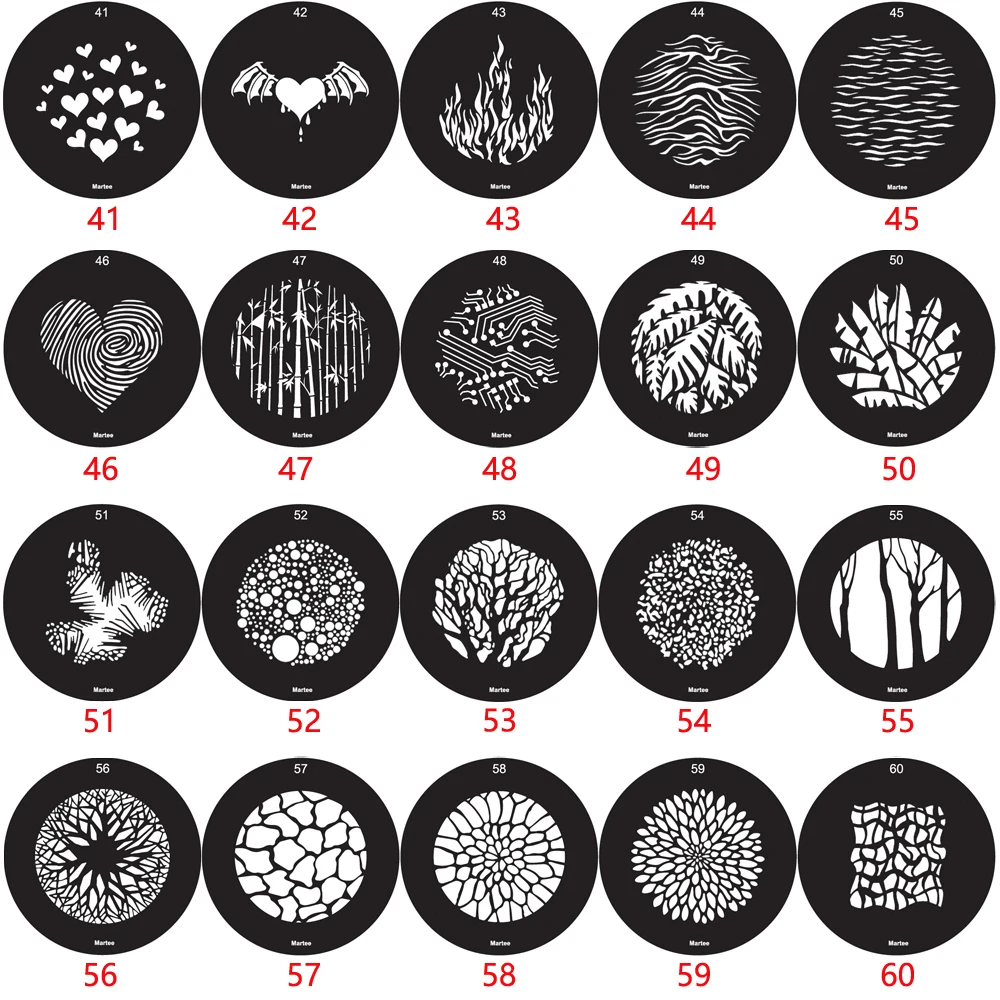 1 шт. Размер GOBO BM, внешний диаметр 66 мм86 мм, расположение теней для фоновой съемки с несколькими сценами, 100 шаблонов на выбор, конденсаторная трубка