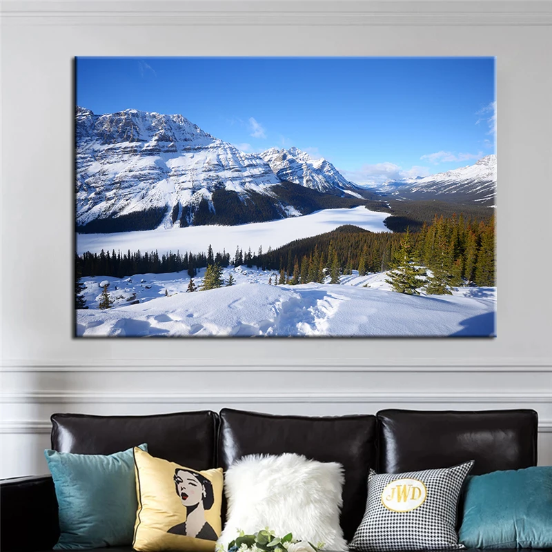 Пейзаж сосновые деревья на снегу, настенная живопись, постер для украшения гостиной и дома