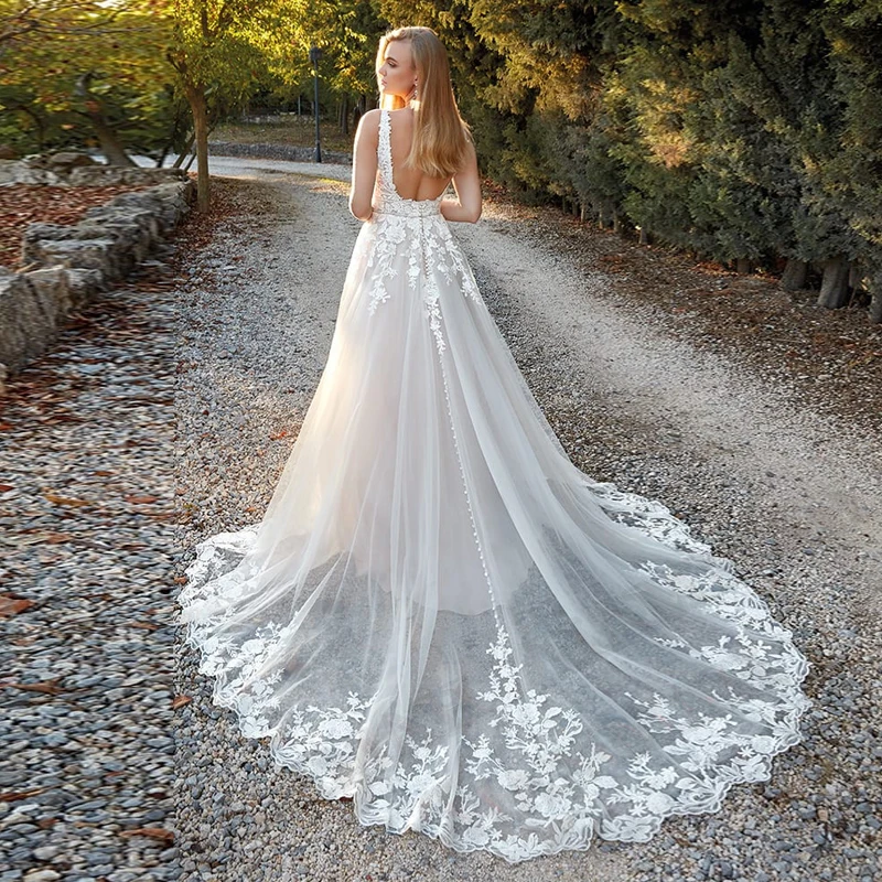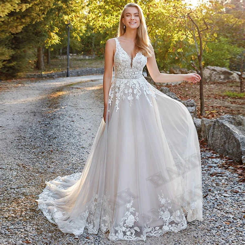KeywordsSexy Backless Aline Wedding Dresses Gown Appliques Lace Pleat Sposa Vestidos Bridal Party Suit Robe De Mariée Customised