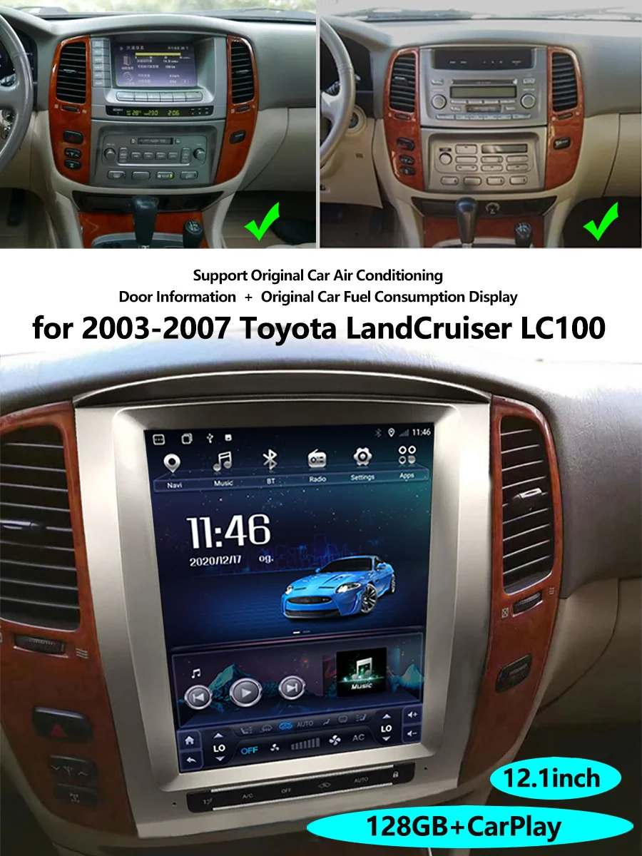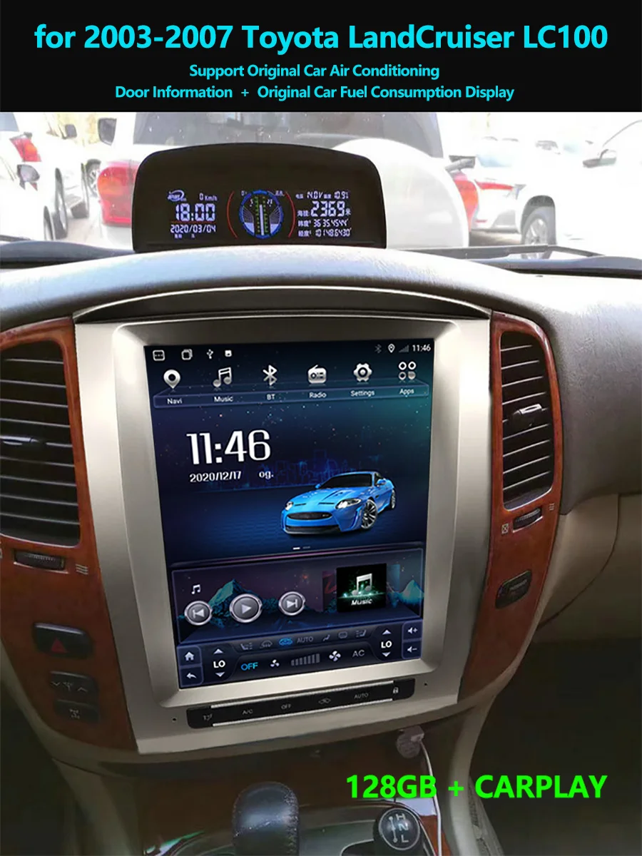 8 + 128G Android мультимедийный видеоплеер для Toyota Land Cruiser 100 LC100 для Lexus LX470 2002-2007 экран Тесла GPS Радио стерео