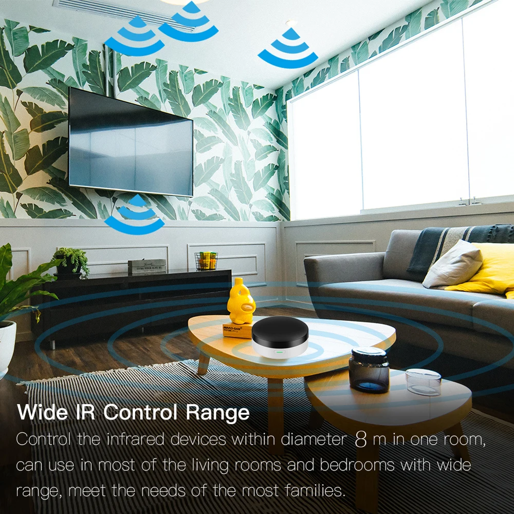Умный шлюз bluetooth buit в универсальном ИК-пульте дистанционного управления и RF433, вы можете использовать свой мобильный телефон для управления бытовой техникой, такой как STB (телеприставка), TV Box, TV, кондиционер, вентилятор, DVD и т. Д.