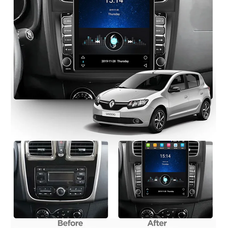 Автомобильный мультимедийный плеер Carplay, 2 Din, экран 9,7 дюйма Tesla, Android, Авторадио для Renault Logan Sandero 2014-2017, GPS-навигатор