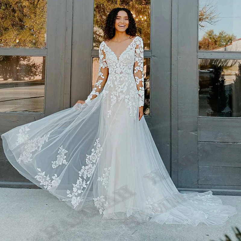 KeywordsVintage Bohemian Aline Wedding Dresses Gown Appliques Illusion Back Sposa Vestidos Bridal Party Suit Robe De Mariée