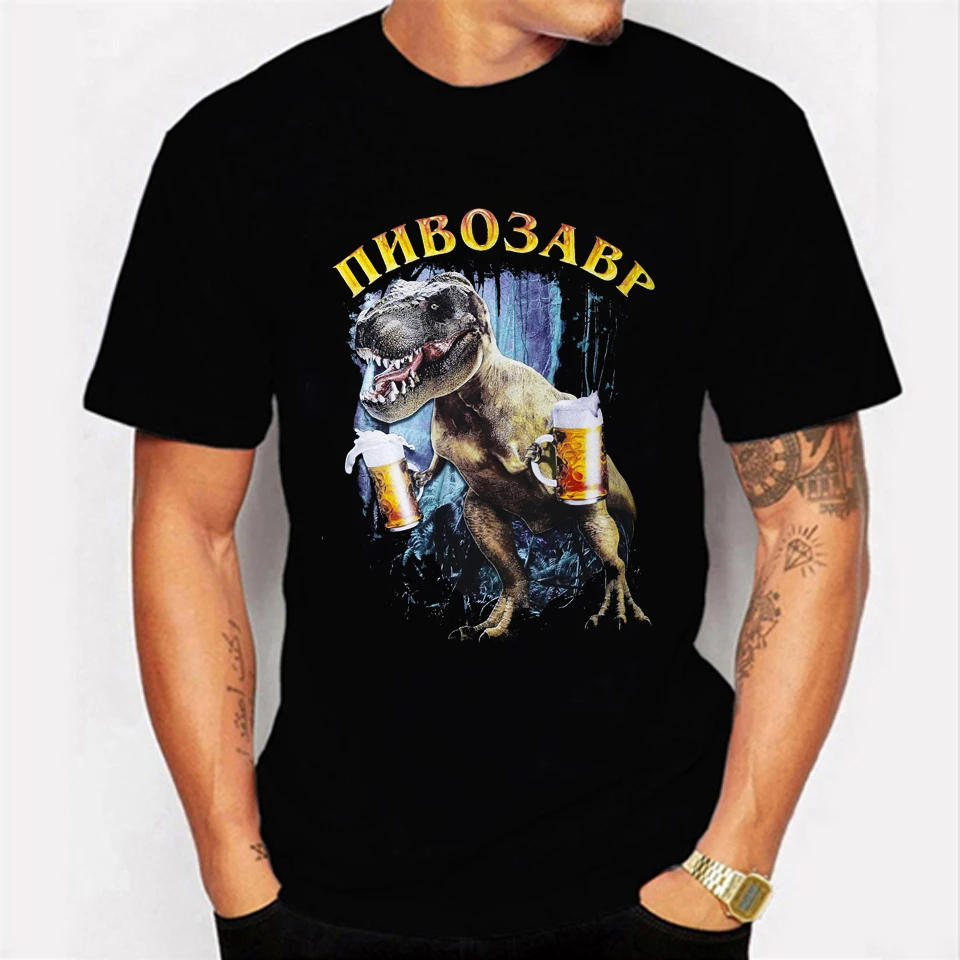 Футболка мужская с изображением динозавра пива, модный топ, уличная...