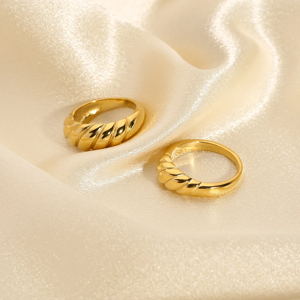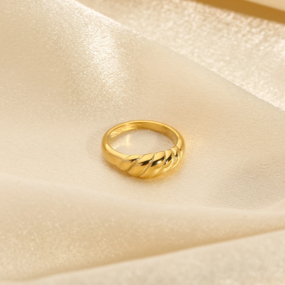 Массивное кольцо из нержавеющей стали 316L для женщин, модное металлическое кольцо с круассанами 18K, водонепроницаемые подарочные аксессуары