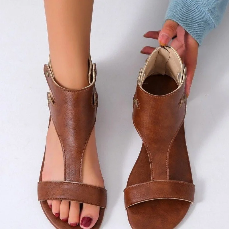 Сандалии женские с открытым носком, повседневные босоножки на плоской подошве, с молнией сзади, оранжевые, европейские и американские, большие размеры, 2021