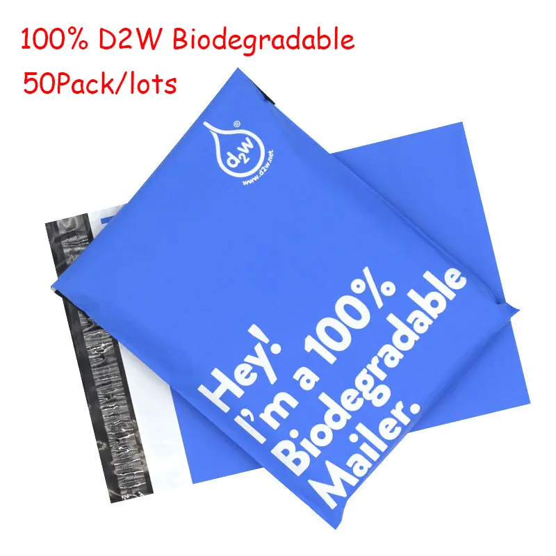50 шт., 100% D2W биоразлагаемая курьерская почтовая сумка, самопечать, синий цвет, упаковка одежды, экспресс-сумка, водонепроницаемая почтовая сумка, сумки