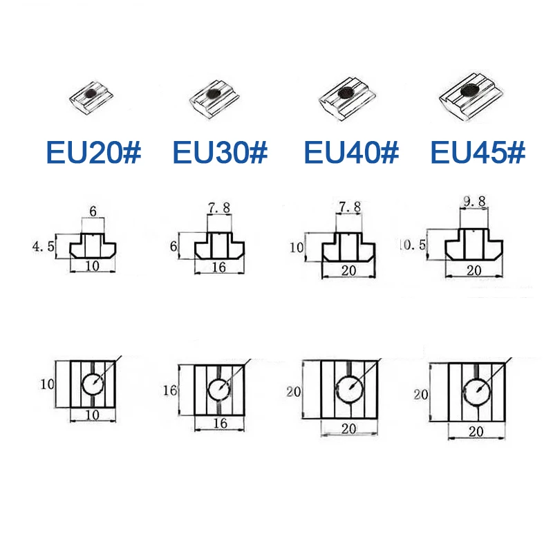 M3 M4 M5 M6 M8 M10 Т-образные квадратные гайки, Т-образный раздвижной молоток EU20 EU30 EU40 EU45, оцинкованная углеродистая сталь