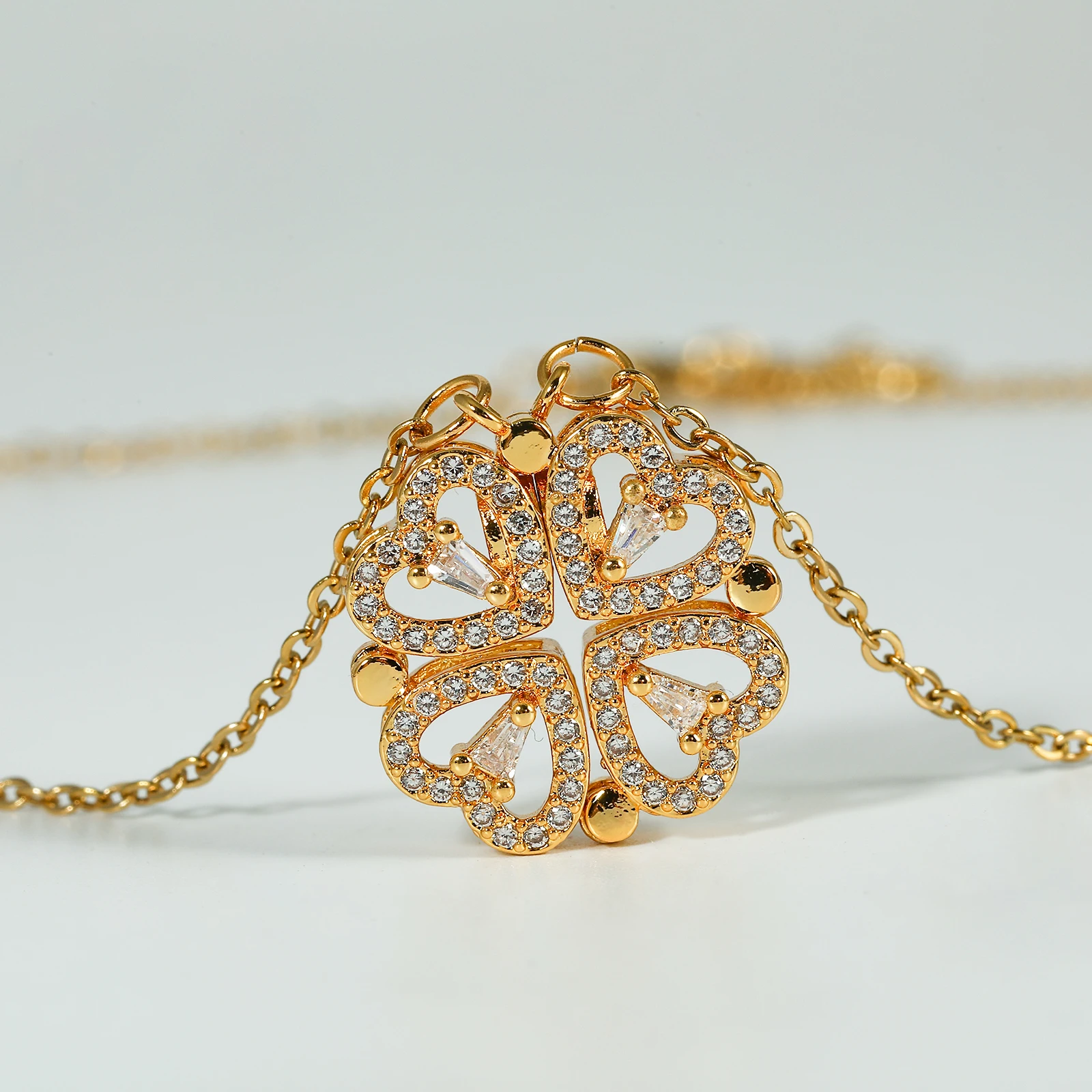 Модное ожерелье в форме четырехлистного сердца, позолоченная цепочка из нержавеющей стали, ожерелье с мелкими фианитами, ожерелье с вывеской открытымзакрытым знаком