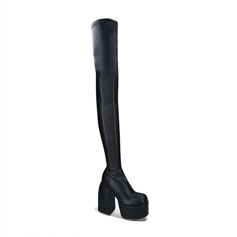 Женские сапоги из микрофибры, черные высокие сапоги до колена на толстой платформе и высоком каблуке, в стиле панк, Осень-зима