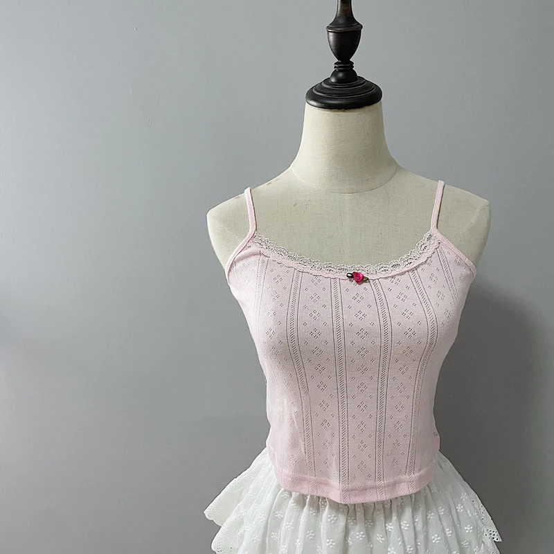 Женский укороченный топ с кружевной отделкой, розовый ажурный топ с цветочным принтом для милой девушки