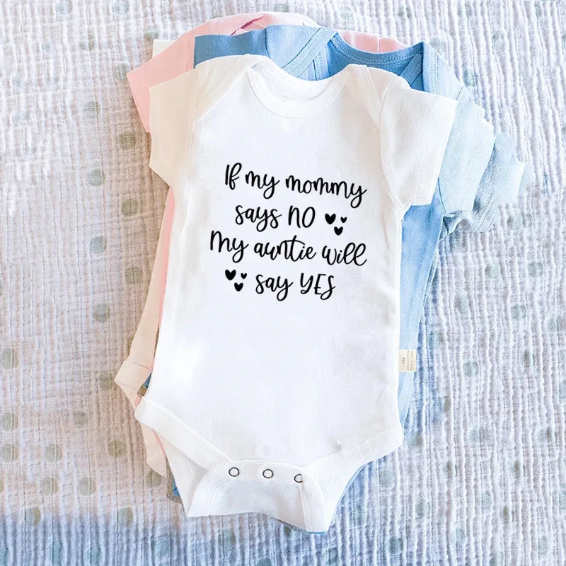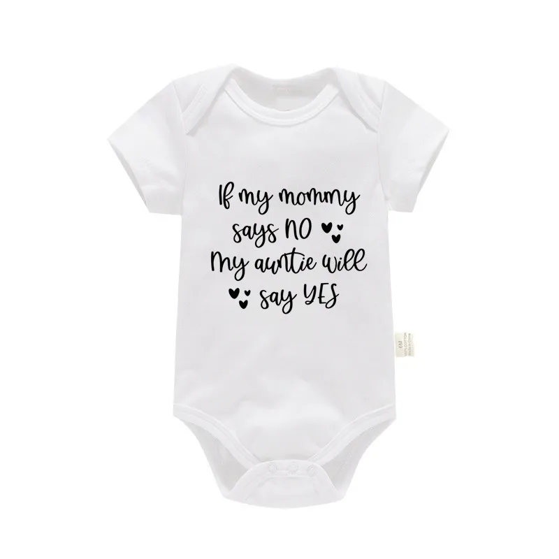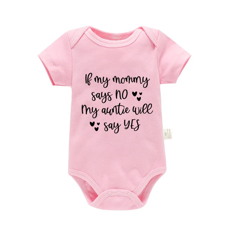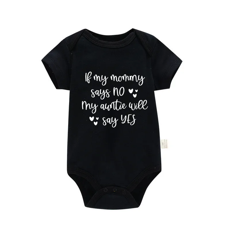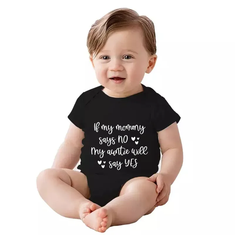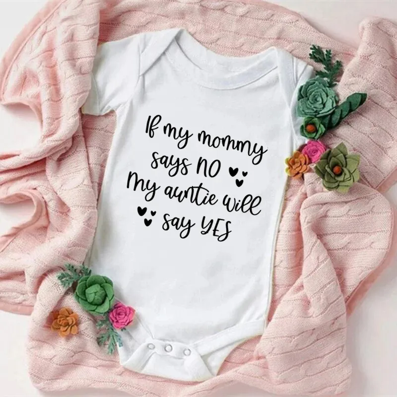Забавная, если мама говорит Нет, моя тетя скажу да, милая детская одежда, хлопковое боди с коротким рукавом для новорожденных, комбинезон для мальчиков и девочек