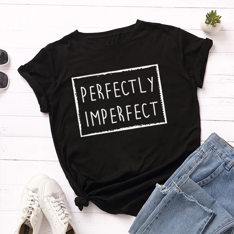 Идеальная Несовершенная женская футболка с принтом, свободная женская футболка с коротким рукавом и круглым вырезом, Дамская Футболка, топы, одежда, женские футболки