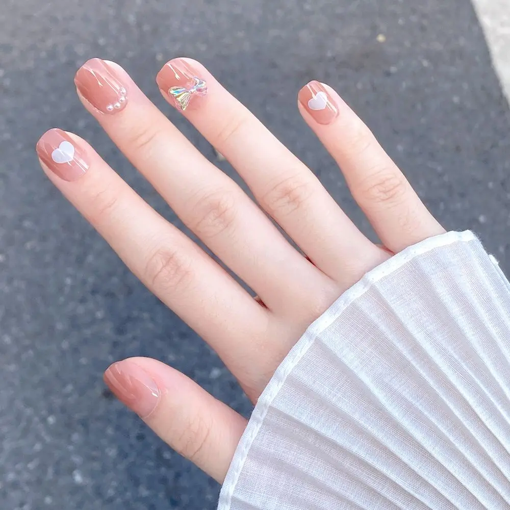 Фототерапия Маникюр матовый СПАР треснувшие ракушки персик сердце жемчужина короткая Накладка для ногтей Искусственные ногти съемные ногти