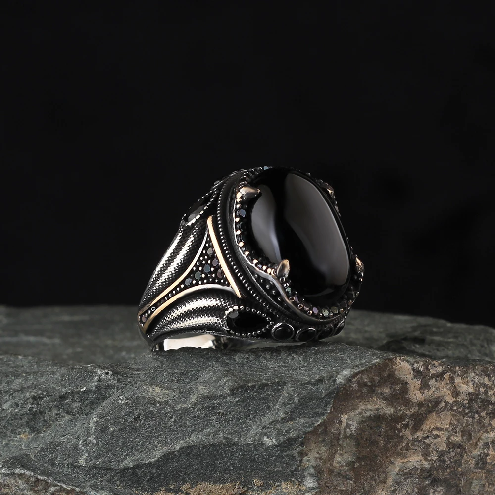 Кольцо из настоящего стерлингового серебра с черным ониксом или из ...